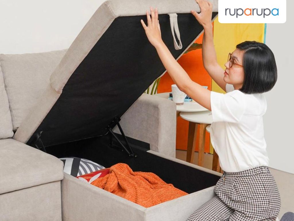 2. Manfaatkan Ruang Penyimpanan pada Bagian Bawah Sofa Bed