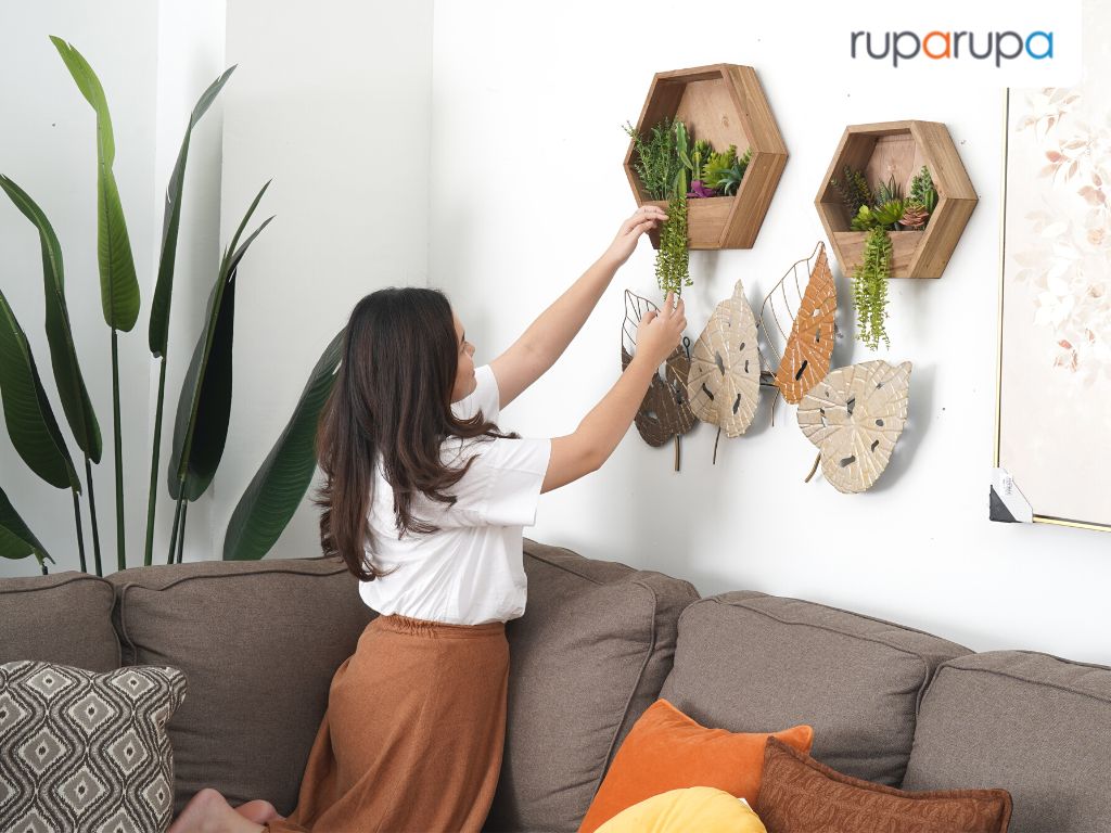 Ruangan musim gugur memang didominasi dengan warna-warna netral. Namun, kamu bisa menambahkan aksen perak pada hiasan dinding agar ruangan tidak terlihat membosankan. Pilih hiasan dinding bentuk dedaunan, seperti inspirasi di bawah ini.