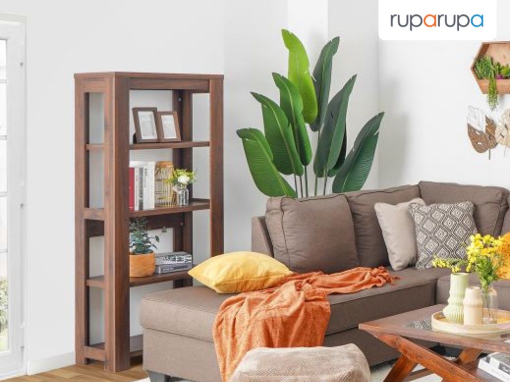 Bila kamu ingin ruangan terlihat lebih asri, kamu bisa menambahkan tanaman hias di sebelah rak buku berwarna cokelat. Apalagi, warna cokelat dan hijau merupakan warna alami yang saling melengkapi. Letakkan juga tanaman kecil di rak sebagai pemanis.