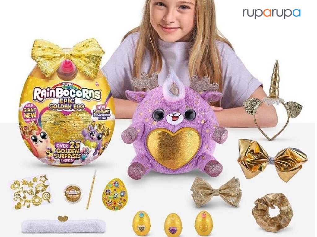 Ada juga mainan kejutan anak berbentuk telur yang mirip dengan poin nomor satu, tapi dalam versi lebih besar, yaitu Zuru Rainbocorns Big Bow Surprise.