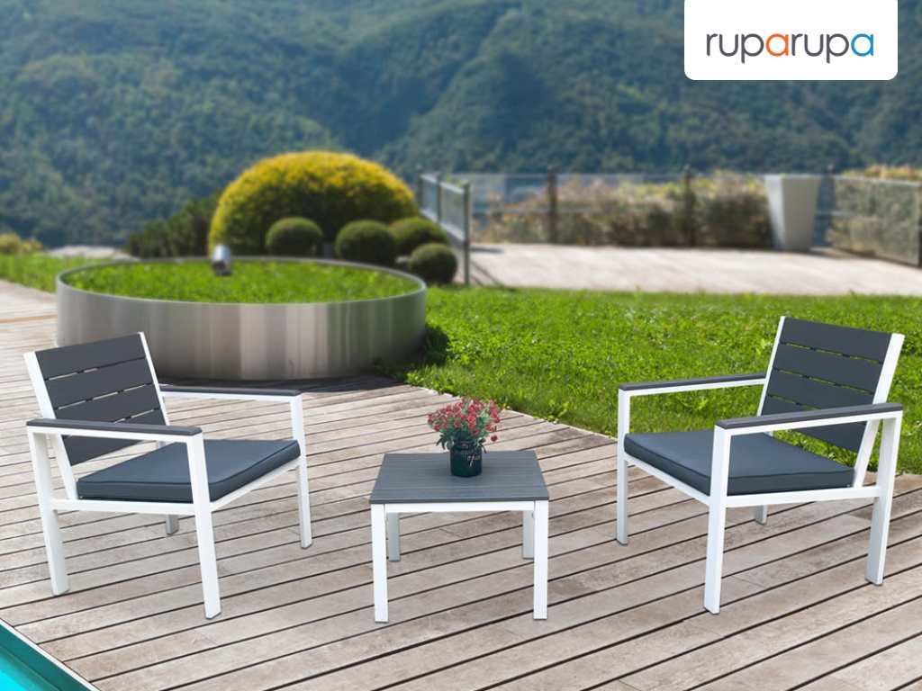 Soleil Luke Set Kursi & Meja Teras – Putih abu-abu