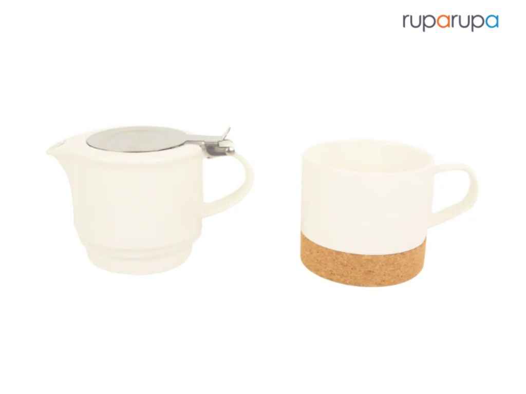 Appetite Set 2 Pcs Teko Dengan Cangkir Stackable – Putih