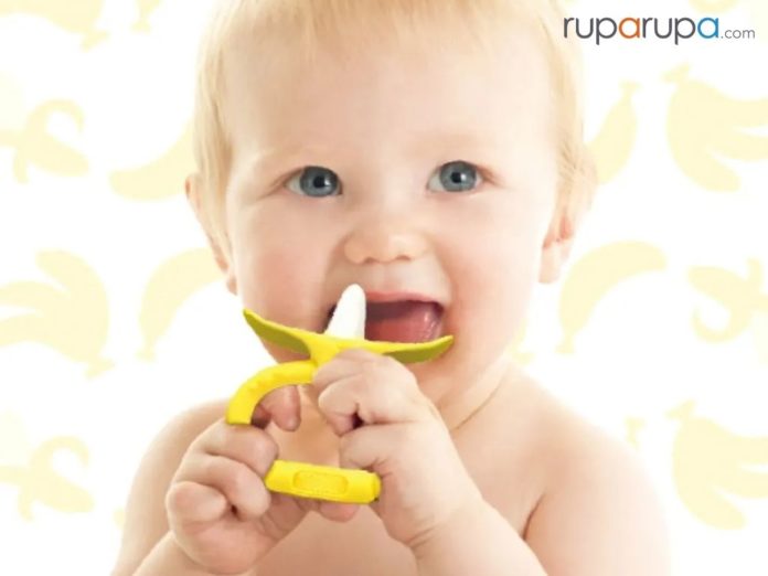 Teether berbahan karet berbentuk pisang ini bisa membuat bayi lebih nyaman saat giginya mulia tumbuh.
