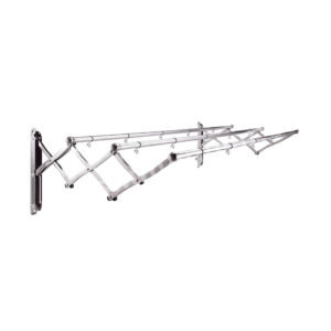 Gunakan jemuran pakaian yang dapat ditarik dan dilipat saat tidak digunakan ini. Anda dapat menyesuaikan lebar tarikan dengan keperluan menjemur. Saat pakaian yang akan dijemur sedikit, cukup tarik 1 baris. Ketika ingin menjemur banyak, tarik hingga menjadi 3 baris. Praktis dan tidak memakan banyak tempat karena kaki jemuran dipasang pada dinding rumah Anda.