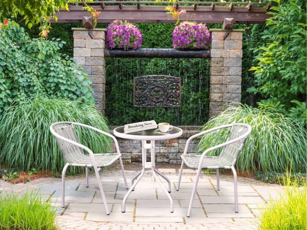 Soleil Wicker Set Kursi & Meja Teras Bistro – Putih