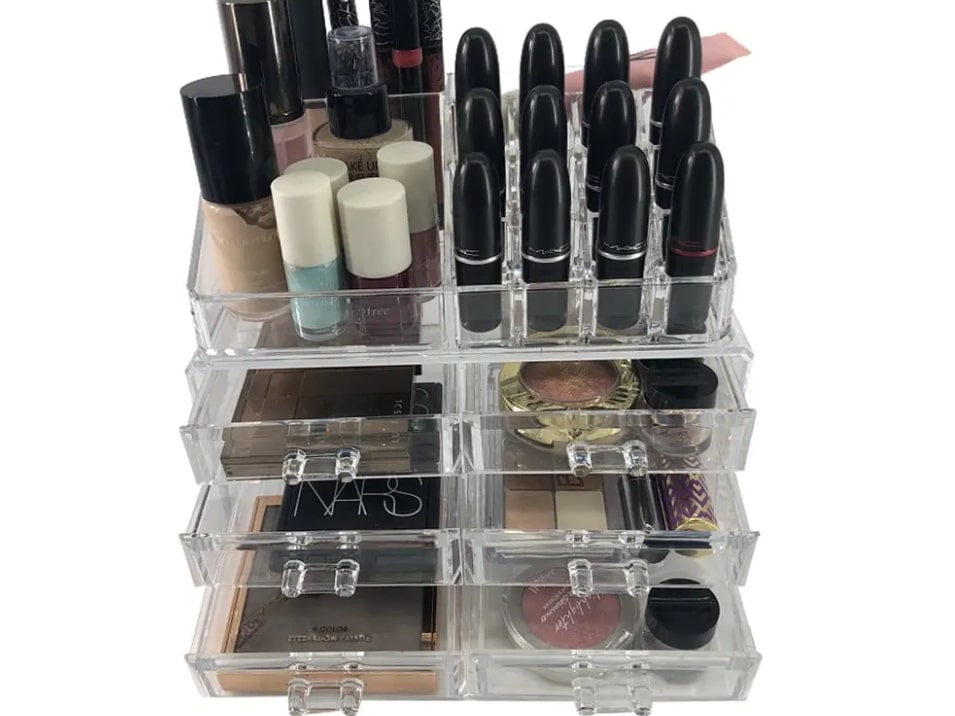 Selain itu, kamu juga bisa menggunakan organizer make up dari bahan akrilik, seperti di bawah ini.