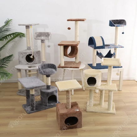 Selain itu terdapat aksen mainan gantung yang akan merangsang kucing untuk meraihnya dengan meloncat. Mainan rumah pohon bisa menjadi simultan agar peliharaan tetap memiliki instingnya pada alam meski sudah menjadi kucing rumahan.