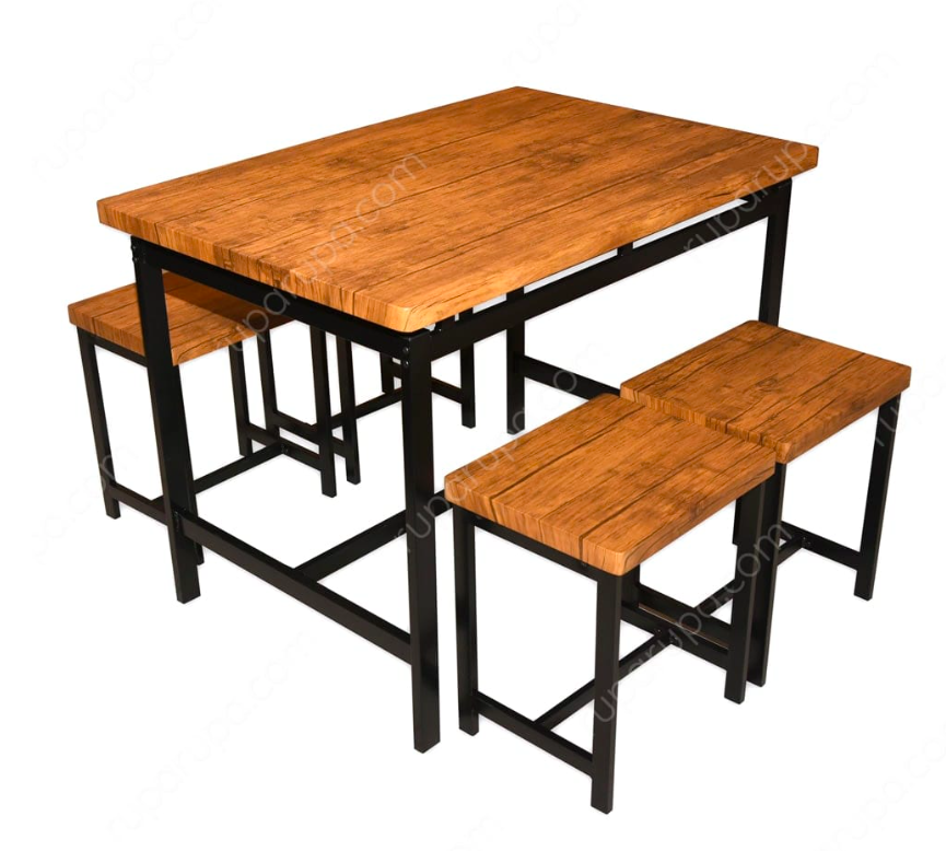 Selain meja bar, Anda wajib menambahkan set meja dan kursi seperti diatas. Selain tidak perlu repot membeli kursi dan meja secara terpisah, membeli meja dan kursi secara set akan menjadikan harganya lebih murah loh. Sentuhan ornamen kayu dan warna hitam sangat cocok untuk konsep industrial Anda.