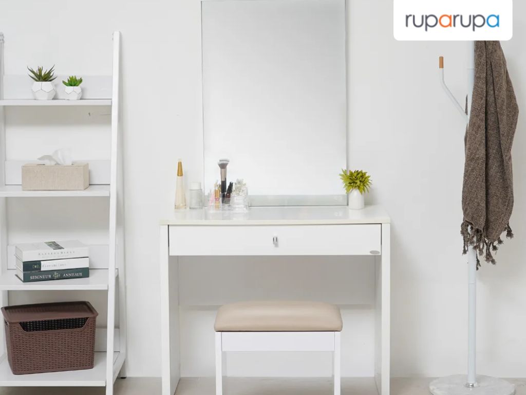 Nah, kamu pasti mau memiliki meja yang rapi dan estetik? Apalagi, meja rias tidak hanya berfungsi sebagai tempat perlengkapan make up dan skincare, tetapi juga bisa sebagai hiasan di dalam kamar tidur.