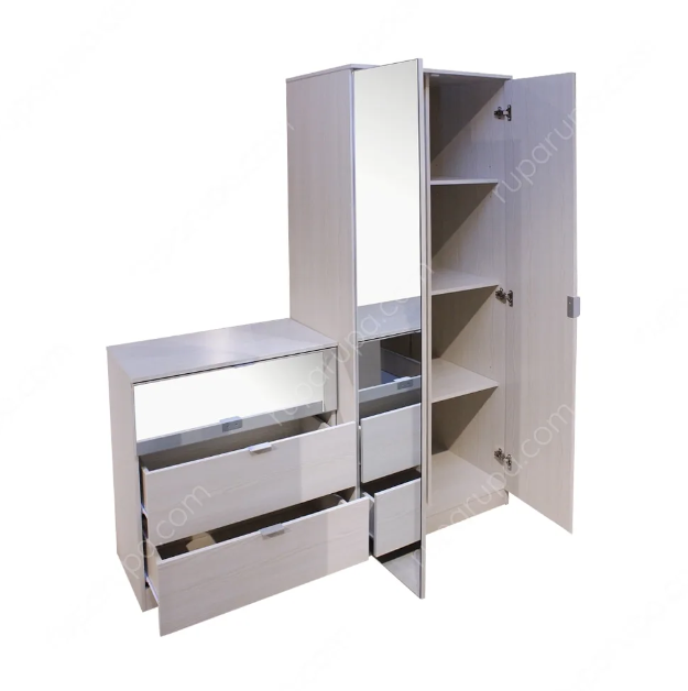 Permudah penyimpanan pakaian dan barang kalian dengan set lemari dan laci dari Informa. Set ini memiliki fitur cermin sehingga memudahkan kalian untuk bersiap-siap.