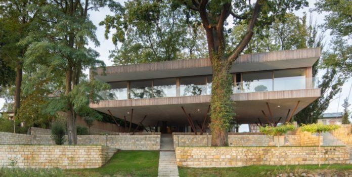 Rumah yang terletak di Zebegény, Hungaria Utara ini adalah karya RJZS Architects. Bangunan dengan 12 tiang penopang ini terletak di tanah yang curam akibat tergerus air hujan. Seluruh rumah terbuat dari kayu ringan yang memberikan tampilan sederhana.