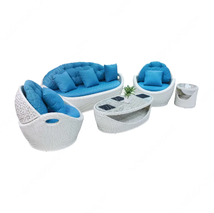 Dengan demikian, pastinya akan terasa lebih nyaman untuk Anda gunakan dan bersantai atau berkumpul bersama keluarga. Set sofa outdoor ala korea ini terdiri dari kursi dan meja, dengan sentuhan aksen anyaman atau rajut pada desainnya.