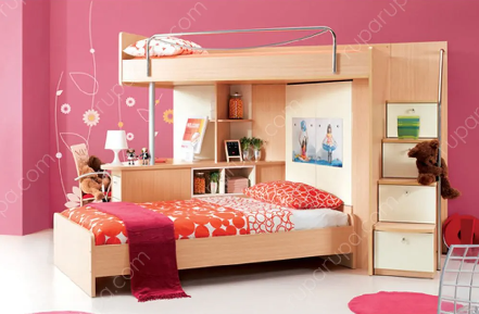 Tidak ada lagi namanya takut untuk tidur sendiri karena tetap akan ada adik/kakak nya yang menemani tidur dalam kamar yang sama. Dijamin, anak Anda akan sangat suka jika mempunyai set tempat tidur seperti ini! Jika rumah Anda mempunayi tema ala korea, akan sangat cocok juga desainnya.