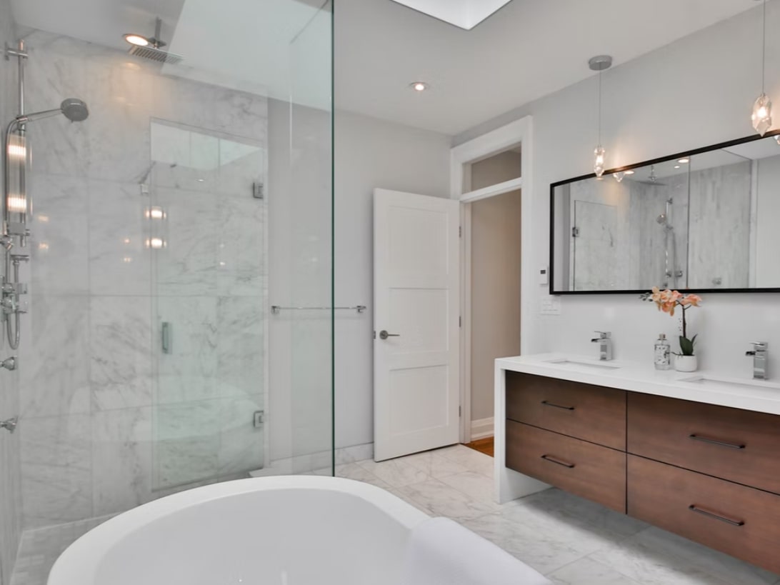 Jika kamar mandi cukup besar, kamu bisa menambahkan bathtub di bawah pancuran. Tentu, keberadaan bathub bisa membuat kamu lebih betah di kamar mandi.