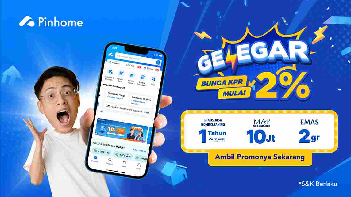 Milki hunian idaman di Pinhome dengan Promo GELEGAR! Kamu bisa mendapatkan promo DP 0%, bunga KPR rendah mulai dari 2%, bebas biaya admin hingga Rp50 juta, dan garansi anti bocor selama setahun! Selain itu, calon buyer juga bisa memenangkan hadiah langsung berupa emas. Jangan sampai ketinggalan! Cek selengkapnya di sini.