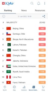 5. Untuk melihat peringkat skor kualitas udara di berbagai negara, pilih menu Ranking.