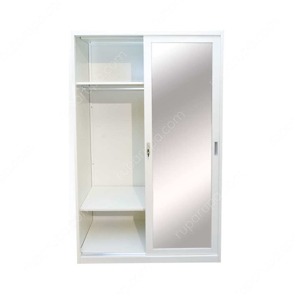 Lemari pakaian geser. Model lemari ini sangat sesuai dengan ruangan yang tidak terlalu luas. Model pintu geser tidak akan memakan tempat ketika pintu lemari dibuka, sehingga lemari model ini bisa ditempatkan di mana saja tanpa takut mengganggu perabotan lain yang ada di sebelahnya.