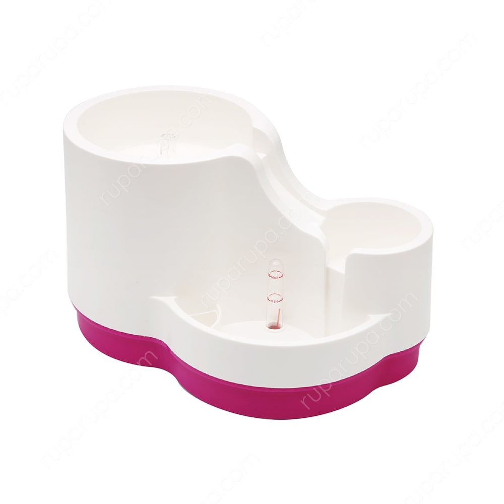 Dengan model menyerupai dispenser, air minum akan mengalir ke dalam piring dengan sendirinya tanpa khawatir air di dalam piring akan tumpah.