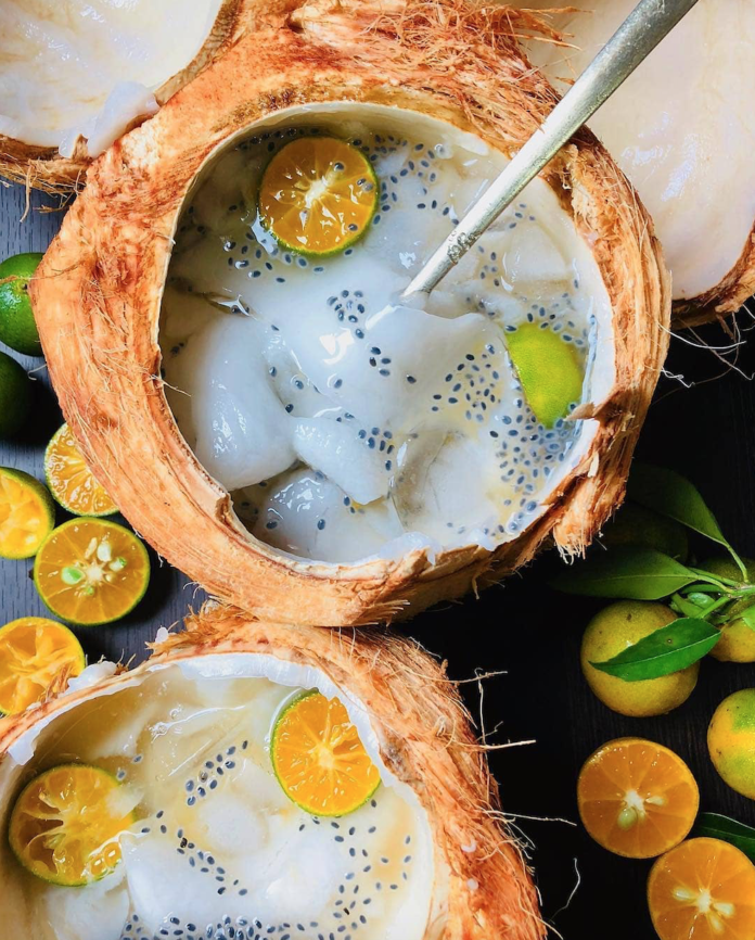1. Ambil bagian kelapa muda dengan sendok atau pengerok, sisihkan