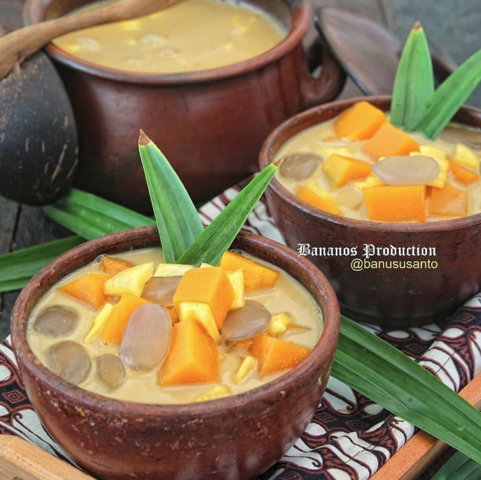 Dessert dengan rasa manis gula jawa yang memanjakan lidah, semakin sempurna dengan potongan pisang yang legit.