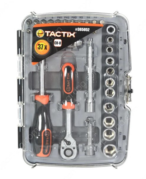 Kunci Pas ini terbuat dari chrome vanadium. Isinya sangat banyak dan lengkap yaitu sekitar 21tip dengan ukuran sok yang berbeda beda. Selain itu satu set ini terdapat dua ekstensi tambahan untuk meningkatkan jangkauan kunci sok, terdapat juga obeng yang memiliki ukuran yang berbeda beda. Jadi memiliki satu set Kunci Pas Tactix ini bisa mempermudah perjalanan anda.