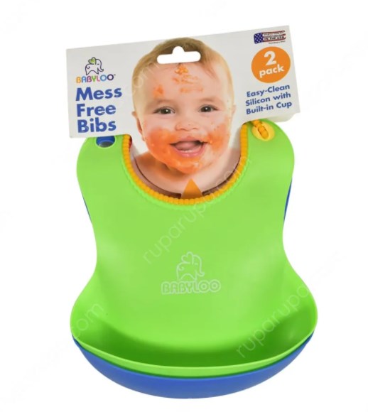 5. Babyloo Celemek Makan Bayi Silicon 2 Pcs – Biru/Hijau