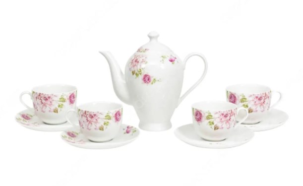 Satu set produk ini akan terdiri dari 1 buah teko teh dan juga 4 cangkir dengan saucernya. Tekonya sendiri memiliki kapasitas sekitar 1,1 liter sedangkan untuk cangkir berkapasitas sebesar 200 ml. Peralatan klasik dengan desain menarik ini cocok menemani minum teh pada saat kumpul bersama keluarga tercinta ataupun teman-teman dekat.