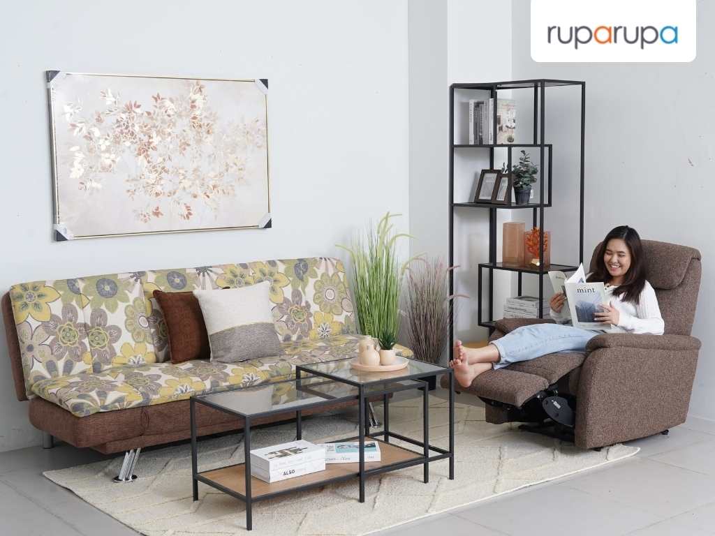 Cokelat termasuk warna natural yang bisa dipadukan dengan warna terang maupun gelap, seperti rekomendasi sofa cokelat di bawah ini. Sofa bed yang dilengkapi dengan aksen motif bunga pada bagian dudukannya bisa menciptakan kesan ceria di dalam ruangan.