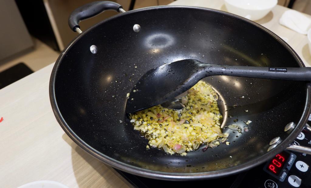 6. Setelah bumbu tersebut mengeluarkan aroma yang harum, kamu bisa memasukkan ⅓ gelas air.