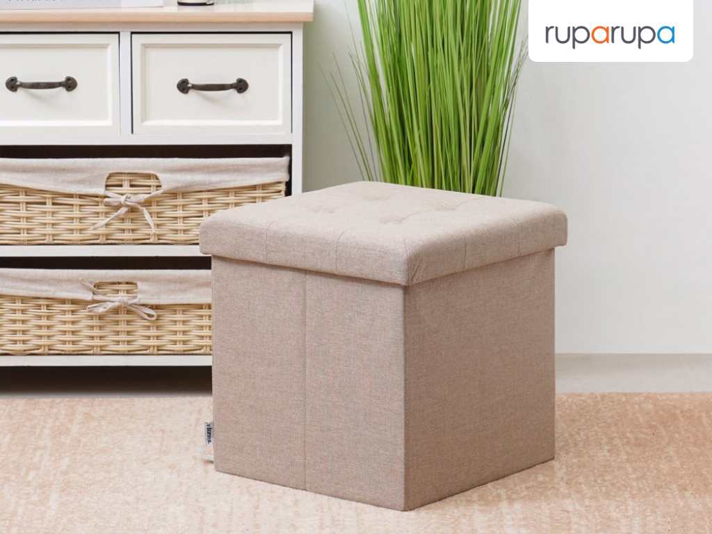 Selain sofa, kamu juga dapat menambahkan tempat duduk lain untuk membuat ruang keluarga jadi lebih multifungsi. Pilih bangku jenis ottoman yang sudah memiliki tempat penyimpanan khusus.