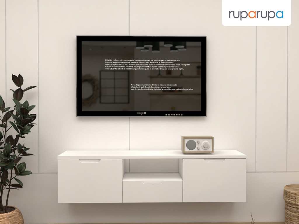 Rak dinding tempel  bisa membuat ruang keluarga terlihat luas dan lebih modern. Kamu dapat memakai rak yang berkilau agar terlihat elegan. Lalu, letakkan rak tepat di bawah TV sebagai tempat menyimpan remote control dan barang lainnya.