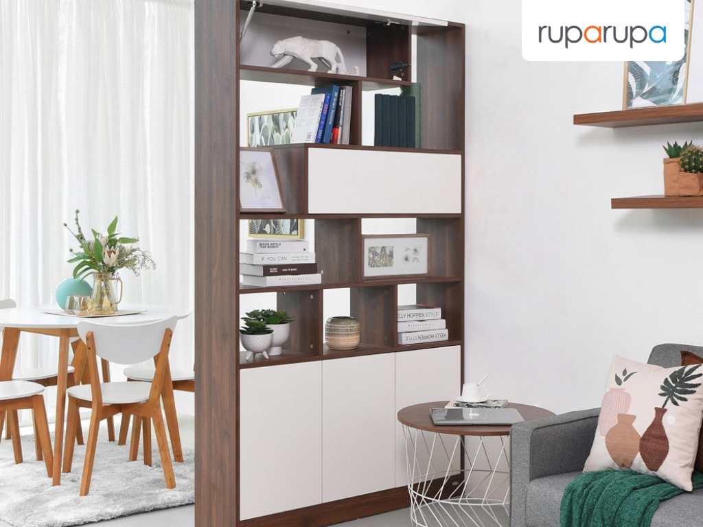 Kabinet multifungsi bisa digunakan sebagai partisi antara dua ruangan, seperti ruang keluarga dan ruang makan. Kamu juga dapat menggunakan kabinet ini untuk menata berbagai pajangan dekoratif.