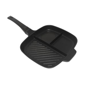Satu lagi alat masak yang wajib ada di dapur Anda, wajan panggang dengan 3 area masak. Wajan ini memiliki gagang yang ergonomis dan terbuat dari aluminium berkualitas. Penyebaran panas pun menjadi lebih cepat dan merata. Efisien dan hemat bahan bakar tentunya.