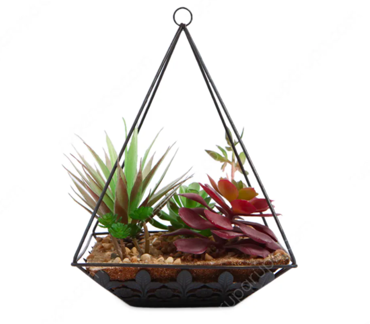 Berikan dekorasi cantik pada hunian Anda dengan tanaman artifisial dengan Pot Gantung. Tanaman ini bisa digantung di teras atau balkon rumah sehingga cocok untuk hunian minimalis yang tidak dilengkapi taman. Dilengkapi dengan pot gantung unik bebentuk menyerupai piramid.