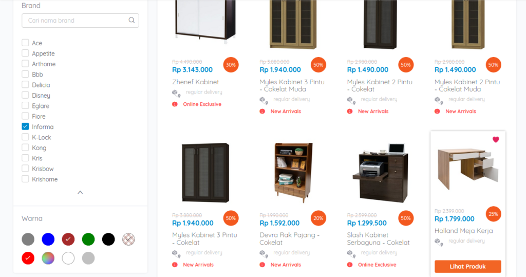 Anda juga dapat mengurutkan tampilan halaman berdasarkan produk paling relevan, nama produk sesuai urutan alfabetis, harga termurah, hingga diskon tertinggi. Semua sesuai preferensi Anda!