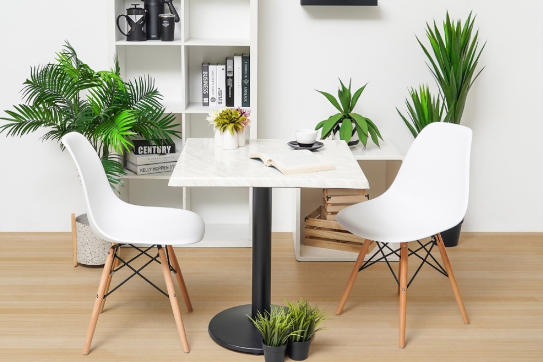 Kamu bisa meletakkannya di tengah antara dapur dan ruang keluarga, lalu letakkan dengan arah menghadap jendela untuk melihat pemandangan. Jadinya, kamu bisa lebih mudah mengganti suasana kerja dan makan.