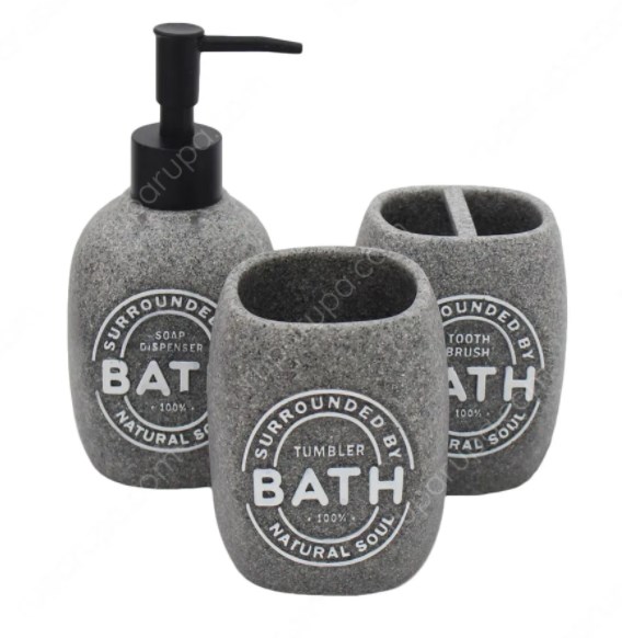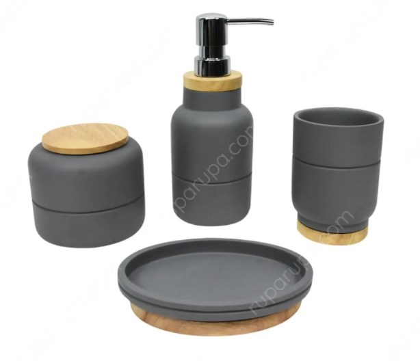 Kris Set Aksesoris Kamar Mandi Polyresin 4 Pcs – Abu-Abu