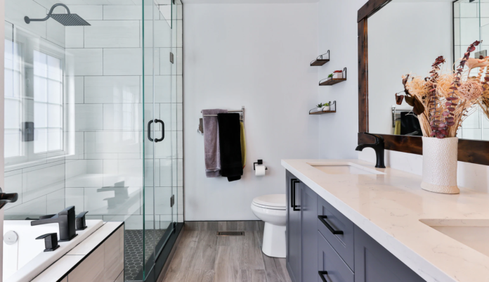 Sudah bosan dengan bentuk keramik persegi ataupun persegi panjang? Nah, sudah saatnya kamu memvariasikan keramik tersebut dengan pemasangan miring secara selang seling, ataupun memilih variasi keramik yang unik seperti hexagon. Selain membantu meningkatkan tampilan estetika di kamar mandi, variasi ini juga membantu mengurangi tekstur licin di lantai.