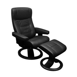 Nordic Kursi Recliner Kulit & Ottoman – Hitam